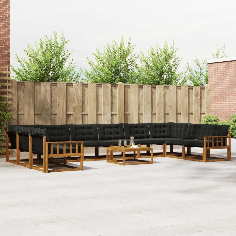 Комплект дивани за открито 11 pcs Естествено и черно
