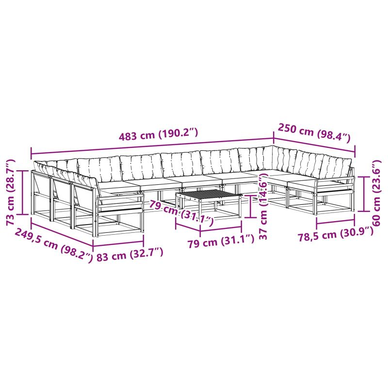 • 12 x Възглавница за гръб: 80 x 43 x 10 см (ДxШxВ)