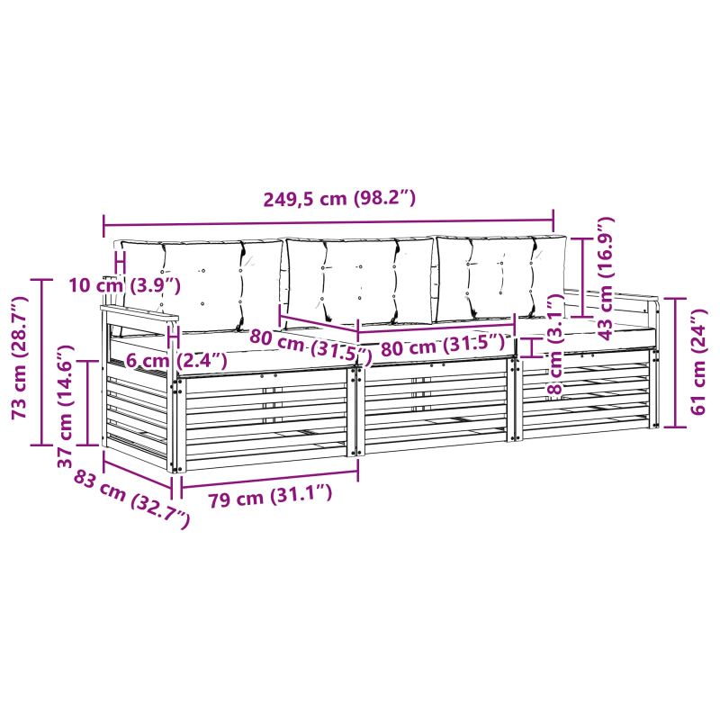 • 3 x Среден диван: 79 x 83 x 73 см (ДхШхВ)