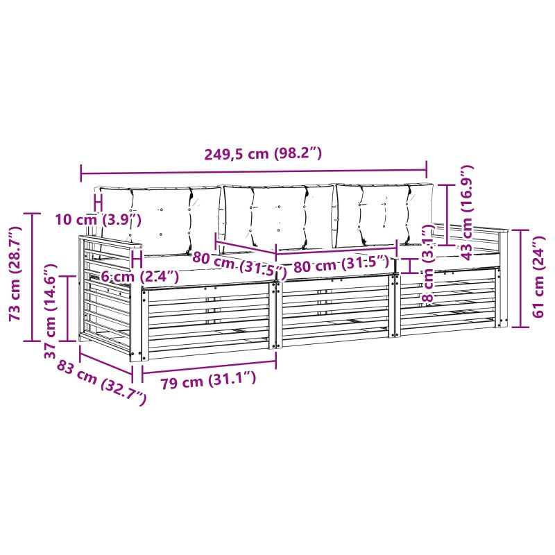 Този комплект за открито съчетава стил и практичност, създавайки акцент в градината или на терасата. Със своите чисти линии и минималистичен дизайн, той придава елегантност и е идеален за забавления на открито. Изработен е изцяло от масивна акациева дървесина, която му осигурява дълготрайност и визуално привлекателен вид. Издръжлива рамка от масивна акациева дървесина: Този комплект е известен със своята здравина и устойчивост на навън. Силната конструкция ти осигурява надеждна опора и дълготрайност, а топлият натурален цвят добавя уют в градината или на терасата. Устойчив на времето дизайн: Комплектът има лаково покритие, което го защитава от слънце и леки дъждове. Полираният завършек спомага за запазване на визията и функционалността, осигурявайки дълъг срок на експлоатация за твоята градина, тераса или двор. Компоненти и дизайн: Всеки елемент, от облегалките до седалките, е създаден за стил и комфорт. Поддържащите функции осигуряват допълнителен уют, а концепцията за дизайна е визуално привлекателна за различни събития на открито. Комфорт и многофункционалност: Модулният дизайн дава възможност за адаптация и разнообразие. Перфектен е за релаксация, събирания или тихи моменти на четене – комплектът безпроблемно се приспособява към всяка открита среда, като максимизира комфорта. Лесна поддръжка: Поддържането му е просто: просто минавай с влажна кърпа и избягвай остри средства. Редовната грижа помага да запазиш вида му и да удължиш живота му.