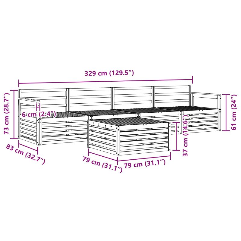 Комплектът градински мебели съчетава стил и практичност, правейки всяка градина или тераса по-впечатляваща. С модерен дизайн и чисти линии, той добавя елегантност и подходящ за приятно изкарване навън с приятели. Изработен от масивна акация, този комплект е устойчив и запазва външния си вид, идеален за тези, които ценят комбинацията от удобство и стил в градинските мебели. Издръжлива масивна акациева дървесина: Комплектът е изработен от здрава акация, устойчива на метеорологични условия. Предлага надеждност и дълготрайност, а топлият му тон придава уют на всяка градина или тераса. Устойчив на времето: Лакираната повърхност предлага защита от слънце и дъжд, запазвайки както външния вид, така и функционалността. Продуктът е проектиран за по-дълъг живот на открито. Стилизиран дизайн: Всеки елемент е проектиран, за да изглежда добре и да е удобен. Подлакътниците и облегалките предлагат комфорт, а стилът е хармонично интегриран, за да е идеален за всяко открито събитие. Комфорт и гъвкавост: Модулният дизайн позволява различни конфигурации, за да се адаптира към всяко пространство. Идеалне за почивка, социални събирания или тихи моменти с книга, този комплект се адаптира лесно и максимизира комфорта. Лесна поддръжка: Почистването става с влажна кърпа, а за поддръжка избягвайте остри препарати. Редовната грижа помага да запазите мебелите в отлично състояние и да удължите живота им.
