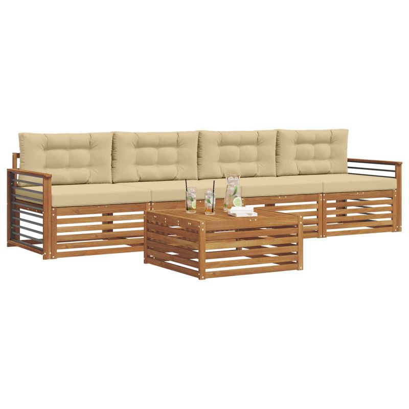 Комплект дивани за открито 5 pcs Натурален и Бежов