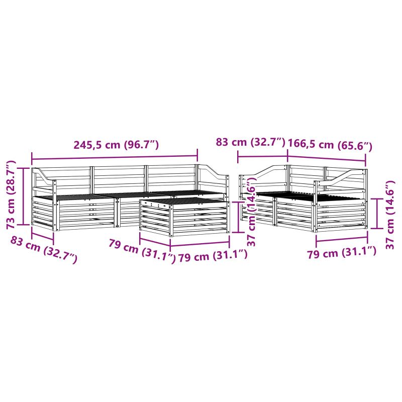 Този комплект мебели за открито свързва стил и функционалност, създавайки впечатляващ фокус в градината или на терасата. С модерния си дизайн, изчистени линии и минимални детайли, добавя елегантност и удобство за открито. Изработен от масивно акациево дърво, този комплект е много здрав и ще изглежда добре дълго време – идеален избор за тези, които търсят практични решения и изтънчен стил. Издръжливо акациево дърво: Комплектът е направен от истинско акациево дърво и е известен с дълговечността и устойчивостта си на атмосферни условия. Солидната конструкция осигурява надеждност и стабилност, докато топлият естествен цвят добавя красота на всяко градинско или терасово пространство. Устойчив на времето: Лакираната повърхност осигурява допълнителен слой защита срещу слънце и дъжд. Полираното покритие запазва добрия вид и функционалността, като осигурява дълготрайност за градината, терасата или задния двор. Компоненти и дизайн: Всеки елемент, от подлакътниците до облегалките, е проектиран с внимание към стила и функционалността. Поддръжката осигурява допълнителен комфорт и съвместният дизайн гарантира визуална хармония за различни открити събития. Комфорт и многофункционалност: Модулният дизайн позволява лесна промяна на конфигурацията, за да отговаря на различни нужди. Идеален е за отдих, социални събития или четене на тиха книга, този комплект лесно се адаптира към всяка открита среда и увеличава комфорта. Лесна поддръжка: За да поддържате мебелите в добро състояние, просто ги изтрийте с влажна кърпа и избягвайте агресивни почистващи средства. Редовната грижа помага за запазването на добрия им вид и удължава живота на мебелите.