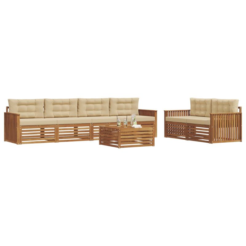 Комплект дивани за открито 7 pcs Натурален и Бежов