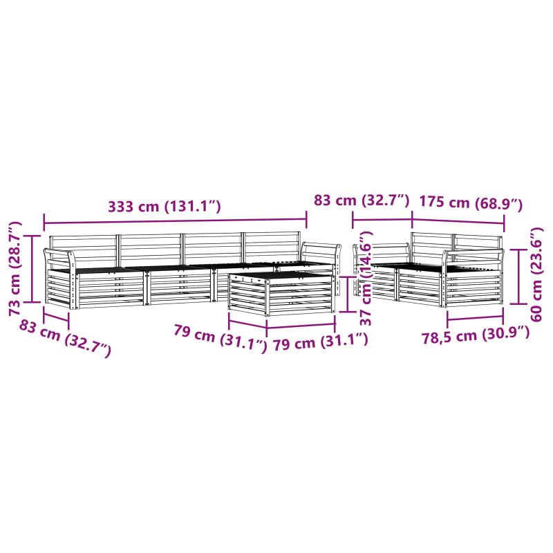 Този комплект за градина е съвършен баланс между стил и функционалност, създавайки впечатляващ акцент в градината или на терасата. Съвременният му дизайн с чисти линии и минималистични детайли добавя елегантност, подходяща за открито отдих и социални събирания. Направен е от масивна акациева дървесина, осигурявайки здравина и дълготрайност, което го прави идеален избор за всеки, който търси практичност и шик в откритата мебелировка. Издръжлива масивна акациева дървесина: Направен от акациева дървесина, този комплект е известен със своята издръжливост и устойчивост на всякакви атмосферни условия. Здравата конструкция предлага надеждна опора и дълготрайна стабилност, а топлият природен тон придава стил на всяка градина или тераса. Устойчив на времето: Този комплект мебели за открито има лакирана повърхност, която осигурява допълнителна защита срещу слънцето, дъжд и въздушни условия. Полираното покритие помага за запазване на външния вид и функционалността му, предоставяйки дълготрайна издръжливост за вашата градина или заден двор. Компоненти и дизайн: Всяка част, от възглавниците до облегалките, е планирана за стил и удобство. Допълнителните функции осигуряват комфорт, а координираният дизайн създава визуално приятно цяло, перфектно за различни открити поводи. Комфорт и многофункционалност: Модулният дизайн позволява лесно променяне на конфигурациите според пространството. Идеален е за релакс, социални събирания или тихо четене, нескончаем за всяко открито място, максимизирайки удобството. Лесна поддръжка: За поддържане на мебелите в добро състояние, просто почиствайте с влажна кърпа и избягвайте агресивни почистващи средства. Редовната грижа удължава живота им.