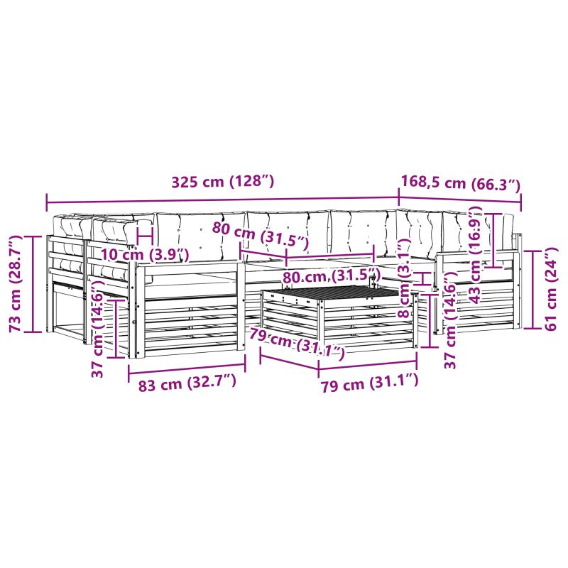 Този комплект градински мебели съчетава стил и функционалност, създавайки страхотен център за всяка градина или тераса. Модерният дизайн с чисти линии и минималистични детайли добавя елегантност, а същевременно осигурява релаксация и социална атмосфера на открито. Направен е изцяло от масивна акациева дървесина, което предоставя здравина и дълготрайна визуална привлекателност - идеален избор за тези, които искат комбинация от практичност и стил в градинските мебели. Рамка от масивна акациева дървесина: Този комплект градински мебели е известен с издръжливостта и устойчивостта си, благодарение на масивната акациева дървесина. Здравата конструкция осигурява надеждност и стабилност, а топлият естествен цвят придава уют на всяка градина или тераса. Дизайн, устойчив на времето: Лакираната повърхност на комплекта предлага допълнителна защита от слънце, леки дъждове и атмосферни условия. Полираното покритие помага да се запази както външния вид, така и функционалността, осигурявайки дълготрайна издръжливост за твоята градина или тераса. Компоненти и дизайн: Всеки елемент от комплекта, от подлакътниците до гръбчетата, е проектиран със стил и комфорт в предвид. Възможностите за поддържане осигуряват допълнителен комфорт, докато единният дизайн гарантира визуално единство, подходящо за всякакви открити поводи. Комфорт и гъвкавост: Модулният дизайн позволява различни конфигурации, за да отговори на нуждите ти. Идеален е за релаксация, социални събирания или просто момент на тишина с книга. Този комплект се адаптира лесно към всяка открита среда, максимизирайки комфорта. Лесна поддръжка: За да запазиш мебелите в добро състояние, просто ги избърсвай с влажна кърпа и избягвай агресивни почистващи средства. Редовната грижа ще помогне да се запази външния вид и да удължи живота на мебелите.
