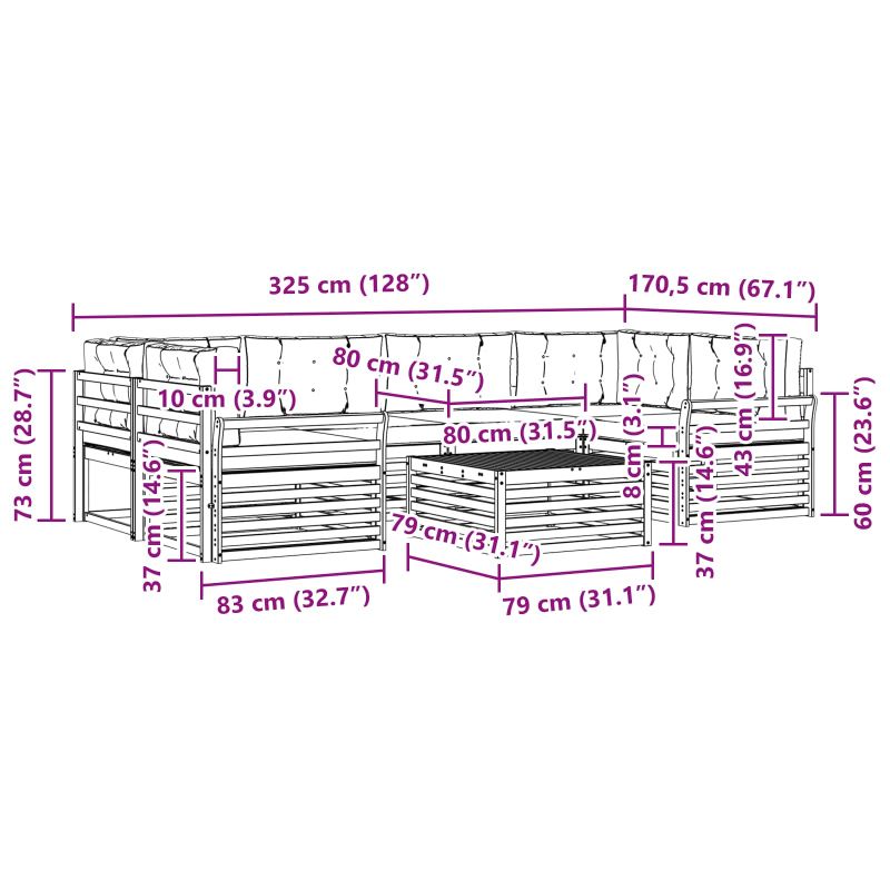 Този комплект градински мебели съчетава стил и функционалност, създавайки страхотен център за всяка градина или тераса. Модерният дизайн с чисти линии и минималистични детайли добавя елегантност, а същевременно осигурява релаксация и социална атмосфера на открито. Направен е изцяло от масивна акациева дървесина, което предоставя здравина и дълготрайна визуална привлекателност - идеален избор за тези, които искат комбинация от практичност и стил в градинските мебели. Рамка от масивна акациева дървесина: Този комплект градински мебели е известен с издръжливостта и устойчивостта си, благодарение на масивната акациева дървесина. Здравата конструкция осигурява надеждност и стабилност, а топлият естествен цвят придава уют на всяка градина или тераса. Дизайн, устойчив на времето: Лакираната повърхност на комплекта предлага допълнителна защита от слънце, леки дъждове и атмосферни условия. Полираното покритие помага да се запази както външния вид, така и функционалността, осигурявайки дълготрайна издръжливост за твоята градина или тераса. Компоненти и дизайн: Всеки елемент от комплекта, от подлакътниците до гръбчетата, е проектиран със стил и комфорт в предвид. Възможностите за поддържане осигуряват допълнителен комфорт, докато единният дизайн гарантира визуално единство, подходящо за всякакви открити поводи. Комфорт и гъвкавост: Модулният дизайн позволява различни конфигурации, за да отговори на нуждите ти. Идеален е за релаксация, социални събирания или просто момент на тишина с книга. Този комплект се адаптира лесно към всяка открита среда, максимизирайки комфорта. Лесна поддръжка: За да запазиш мебелите в добро състояние, просто ги избърсвай с влажна кърпа и избягвай агресивни почистващи средства. Редовната грижа ще помогне да се запази външния вид и да удължи живота на мебелите.