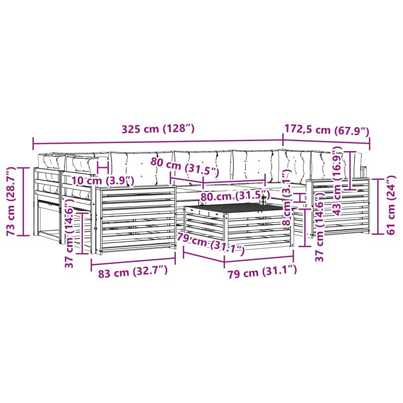 Този комплект градински мебели съчетава стил и функционалност, създавайки страхотен център за всяка градина или тераса. Модерният дизайн с чисти линии и минималистични детайли добавя елегантност, а същевременно осигурява релаксация и социална атмосфера на открито. Направен е изцяло от масивна акациева дървесина, което предоставя здравина и дълготрайна визуална привлекателност - идеален избор за тези, които искат комбинация от практичност и стил в градинските мебели. Рамка от масивна акациева дървесина: Този комплект градински мебели е известен с издръжливостта и устойчивостта си, благодарение на масивната акациева дървесина. Здравата конструкция осигурява надеждност и стабилност, а топлият естествен цвят придава уют на всяка градина или тераса. Дизайн, устойчив на времето: Лакираната повърхност на комплекта предлага допълнителна защита от слънце, леки дъждове и атмосферни условия. Полираното покритие помага да се запази както външния вид, така и функционалността, осигурявайки дълготрайна издръжливост за твоята градина или тераса. Компоненти и дизайн: Всеки елемент от комплекта, от подлакътниците до гръбчетата, е проектиран със стил и комфорт в предвид. Възможностите за поддържане осигуряват допълнителен комфорт, докато единният дизайн гарантира визуално единство, подходящо за всякакви открити поводи. Комфорт и гъвкавост: Модулният дизайн позволява различни конфигурации, за да отговори на нуждите ти. Идеален е за релаксация, социални събирания или просто момент на тишина с книга. Този комплект се адаптира лесно към всяка открита среда, максимизирайки комфорта. Лесна поддръжка: За да запазиш мебелите в добро състояние, просто ги избърсвай с влажна кърпа и избягвай агресивни почистващи средства. Редовната грижа ще помогне да се запази външния вид и да удължи живота на мебелите.