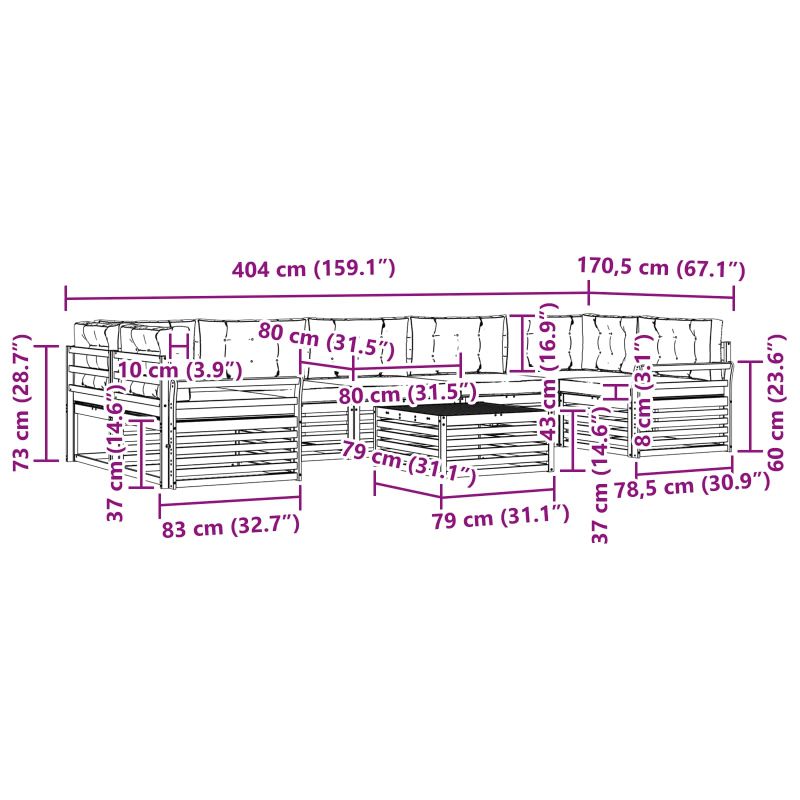 Този комплект мебели за открито е съчетание от стил и функционалност, което оформя централна част за всяка градина или тераса. Модерният дизайн с чисти линии добавя елегантност и осигурява практичност за социални събирания. Издръжлива масивна акациева дървесина: Здравата му структура осигурява дълготрайност и устойчивост на външни условия, а топлата му визия придава charme на всяка градина или тераса. Устойчивост на атмосферни влияния: Лакираната повърхност добавя защита от слънце и дъжд, запазвайки както вида, така и функциите на комплекта за дълго.