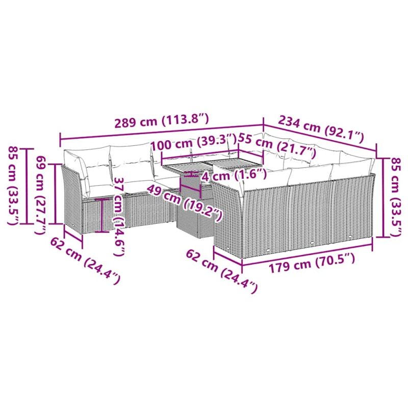 Този градински диван е идеалното допълнение към вашия заден двор, тераса или вътрешен двор, осигурявайки удобно и привлекателно пространство за разговори със семейството и приятелите или просто за почивка и забавление на открито. Издръжлив материал: PE ратан, известен също като полиратан, е здрав синтетичен материал с малко необходима поддръжка, който прилича на естествен ратан. Той е лек, лесен за почистване и често се използва за външни мебели поради своята издръжливост и устойчивост на атмосферни влияния.Функция за съхранение с водоустойчива чанта: Всяка градинска седалка разполага с място за съхранение под седалката, допълнено с водоустойчива чанта за съхранение на възглавници, играчки и други предмети. Вътрешната чанта има горен капак и може да бъде здраво закрепена към седалката със закопчалки за допълнителна стабилност.Регулируем плот: Плотът може да се повдигне, за да направи масата по-висока, което трансформира външната маса от маса за кафе в маса за хранене. Идеална е за гости или за хранене навън.Калъф, който може да се сваля и може да се пере: Тези възглавници за седалки имат подвижни калъфи за лесно пране и поддръжка.Здрава и стабилна рамка: Прахово боядисаната стоманена рамка е здрава, стабилна, издръжлива и устойчива на корозия и неблагоприятни атмосферни условия, което гарантира дълготрайна експлоатация. Добре е да се знае:За да сте сигурни, че вашите външни мебели ще останат красиви, ви препоръчваме да ги защитите с водоустойчиво покривало.