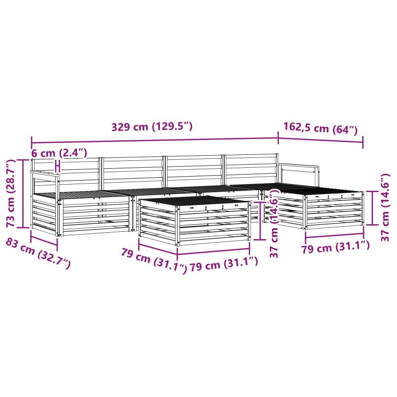 • 4 x Среден диван: 79 x 83 x 73 см (ДШВ)