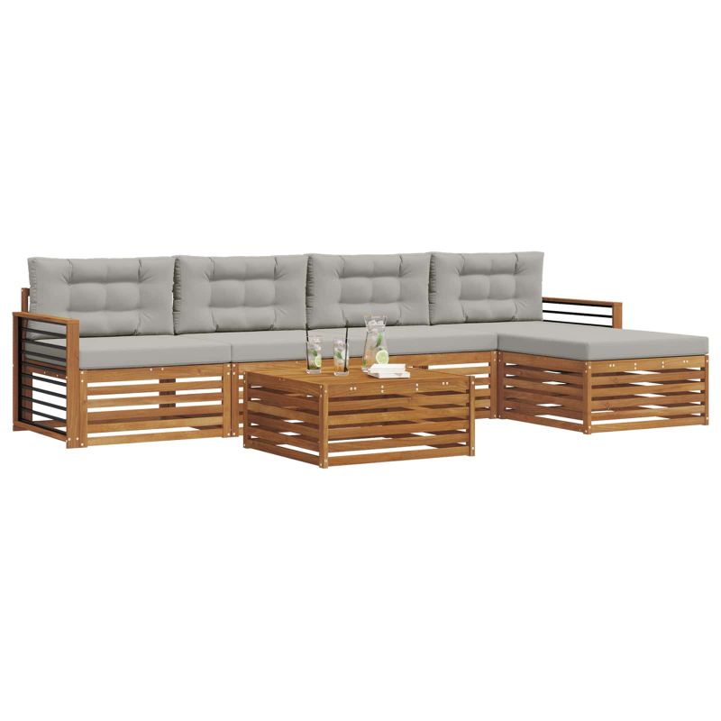 Комплектът за външни мебели е перфектен за всяка градина или тераса. С модерен дизайн и минималистични детайли, той внася елегантност, докато предлага удобство за почивка и социализиране на открито. Изработен изцяло от акациево дърво, комплектът е устойчив и визуално привлекателен – идеален за практични хора, които искат стил. Издръжлива масивна акациева дървесина: Този комплект е здрав и устойчив на времето, правейки го идеален за открито. С надеждна конструкция и топъл естествен цвят, той е точно за всяка градина или тераса. Защита от време: Лаковата повърхност осигурява допълнителна защита от слънце и дъжд, запазвайки как изглежда. Полираното покритие гарантира дълъг живот за мебелите. Стил и функция: Всяка част е проектирана за комфорт и естетика, а дизайнът на конструкцията предлага визуално привлекателно излъчване. Удобство и многофункционалност: Модулният дизайн позволява различни конфигурации, удобно за всякакви нужди. Идеален за почивка или социални събирания, той се нагласява бързо и лесно. Лесна поддръжка: Просто избърсвайте с влажна кърпа и избягвайте тежки химикали, за да запазите красотата му. Редовната грижа удължава живота на мебелите.