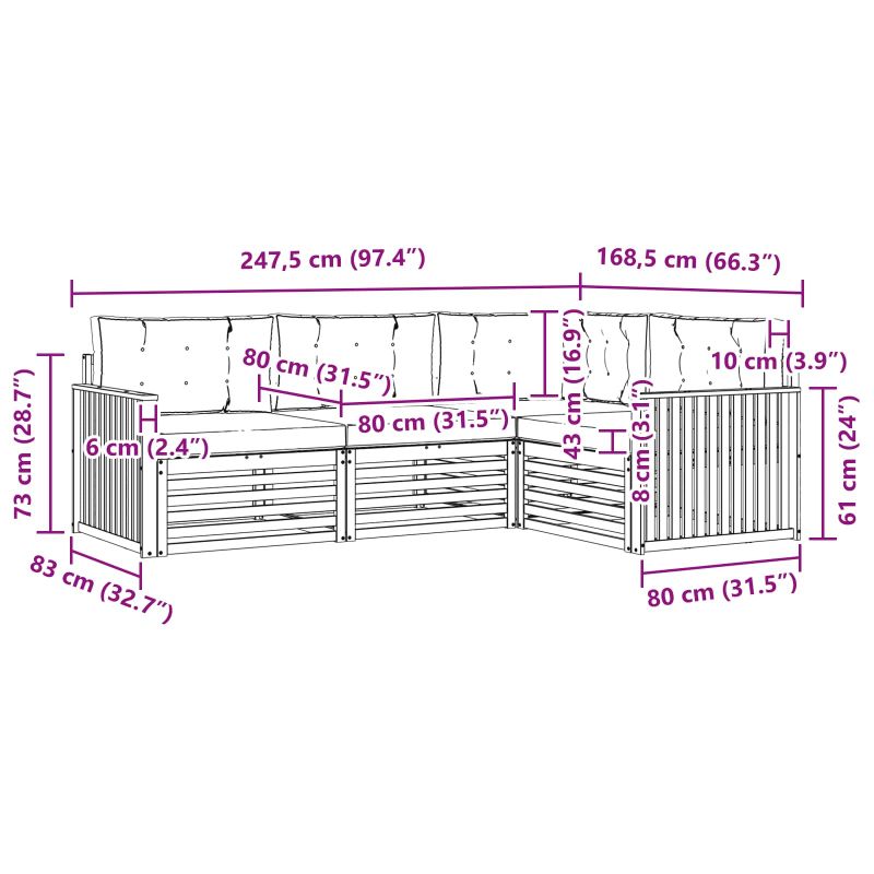 Комплектът за външна мебел комбинира стил и функция, създавайки впечатляващ акцент за всяка градина или тераса. С модерния си дизайн, определен от чисти линии и минимални детайли, предлага елегантност и комфорт за релакс навън и социални събирания. Направен от масивно акациево дърво, комплектът е здрав и с дълготрайна визия, което го прави страхотен избор за тези, които търсят практичност и стил в мебелите за открито. Издръжлива масивна акациева дървесина: Комлектът е направен от масивно акациево дърво и е познат с устойчивостта си на всякакви условия. Здравата конструкция осигурява надеждност и дълготрайна стабилност, а топлият естествен цвят допълва всяка градина или тераса. Дизайн, устойчив на времето: Комплектът е с лакирана повърхност, която осигурява защита срещу слънце и дъжд. Полираното му покритие помага да изглежда все така добре и осигурява дълготрайна издръжливост за вашето открито място. Компоненти и дизайн: Всеки елемент, от подлакътниците до облегалките, е проектиран с внимание към стил и функция. Комфортните характеристики осигуряват допълнителна удобство, а хармоничният дизайн гарантира визуално приятно излъчване за откритите събирания. Комфорт и многофункционалност: Модулният дизайн позволява много конфигурации, идеални за различни пространства и нужди. Перфектен е за релакс, социални събирания или тихи моменти на четене, лесно се вписва навсякъде, където искате максимален комфорт. Лесна грижа и поддръжка: За да поддържате мебелите в добро състояние, просто ги забършете с влажна кърпа и избягвайте груби препарати. Редовната грижа запазва вида им и удължава живота на вашите мебели.