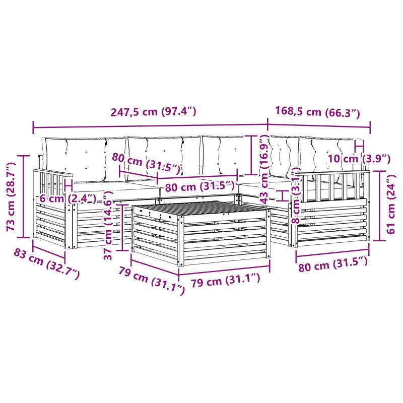 • 4 x Възглавница за сядане: 80 x 80 x 8 см (ДxШxВ)