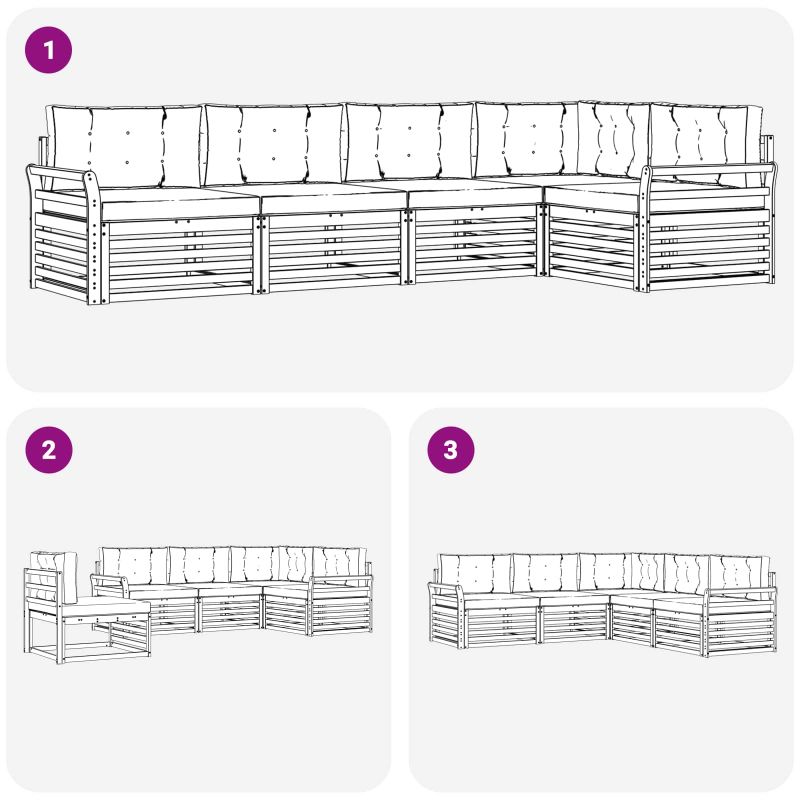 Комплектът за външни мебели съчетава стил и удобство, създавайки невероятна централна част за всяка градина или тераса. С модерния си дизайн, чисти линии и минимално количество детайли, добавя елегантност и е чудесен за социални събирания на открито. Направен е от масивна акациева дървесина, което го прави траен и привлекателен, идеален за хора, които искат практичност и стилно изживяване в градината. Издръжливо масивно акациево дърво: Изработено от тънки акациеви дъски, това е мебели за открито, известен с дълготрайността си. Здравината на конструкцията предоставя стабилност и надеждност, а топлият цвят добавя чар към всяка градина или тераса. Устойчив на времето: Този комплект е обработен с лак, който предоставя допълнителна защита от слънце и дъжд. Полираният завършек поддържа добрия външен вид и осигурява дълготрайна устойчивост. Превъзходен дизайн: Всеки детайл, от подлакътниците до облегалките, е направен внимателно с мисъл за стил и комфорт. Осигурява удобно ползване, а дизайна е визуално приятен за всяко събитие на открито. Комфорт и многофункционалност: С модулния си дизайн, комплектът позволява бърза смяна на конфигурацията. Идеален е за релакс, социални събирания или тихо четене, като лесно се приспособява към всяка открита среда. Лесна поддръжка: Поддържайте мебелите в добро състояние, като ги почиствате с влажна кърпа. Избягвайте агресивни препарати. Редовната поддръжка помага да запазите естетиката и дълготрайността на комплектът.