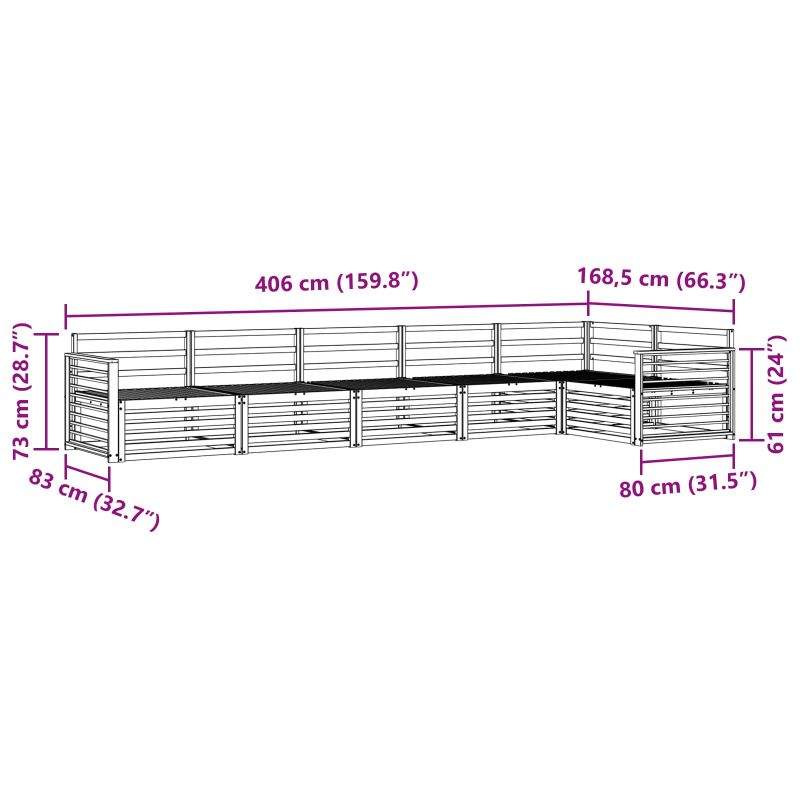 Комплектът за външни мебели комбинира стил и практичност, създавайки атрактивна централна част във всяка градина или тераса. Модерният му дизайн с чисти линии добавя елегантност и е перфектен за външна релаксация и социални събирания. Изработен е от масивна акациева дървесина, осигуряваща дълготрайност и визуална привлекателност, идеален за любителите на практичните и стилни градински мебели. Издръжлив масивен акациев дървен материал: Този комплект мебели е известен със своята устойчивост на времето. Здравата конструкция осигурява надеждност и дълготрайност, а топлият естествен тон подхожда на всяко градинско или терасно пространство. Временно устойчив дизайн: Лакираната повърхност предлага допълнителна защита от слънце и леки дъждове. Полираното покритие запазва естетиката и функционалността, позволявайки използване на вашата градина, тераса или двор с дългосрочна устойчивост. Компоненти и дизайн: Всяка част, от подлакътниците до облегалките, е проектирана с внимание. Поддържащите елементи осигуряват комфорт, а съгласуваният дизайн гарантира визуално единство, подходящо за различни открити поводи. Комфорт и многофункционалност: Модулният дизайн предлага различни конфигурации, адаптирайки се към вашите нужди. Перфектен както за релаксация, така и за социални събирания или четене, този комплект е сигурен източник на комфорт и практичност за всяка открита среда. Лесна поддръжка: За да запазите мебелите в добро състояние, просто избърсвайте с мокра кърпа. Редовната поддръжка ще удължи живота на мебелите.