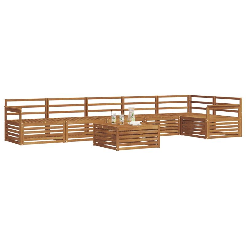 Комплектът за външна мебел съчетава стил и практичност, създавайки зашеметяващ акцент за всяка градина или тераса. Неговият модерен дизайн, в стил „минимализъм“, добавя елегантност, като същевременно осигурява комфорт за релаксиращи мигове или социални събития. Направен изцяло от масивна акация, комплектът предлага отлична издръжливост и дълготрайна визия, което го прави идеален за тези, които търсят баланс между комфорт и елегантност в мебелите за открито. Издръжлива масивна акация: Направен от масивна акация, този комплект за външни мебели е устойчив на неподходящи условия. Стойката предоставя стабилност, а топлият природен тон обогатява всяка градина или тераса. Устойчив на атмосферни условия: С лакирана повърхност, която защитава от слънце и дъжд, комплектът запазва визията и функционалността, осигурявайки дълготрайна употреба в градината. Компоненти и дизайн: Всеки елемент, от възглавниците до гръбчетата, е проектиран с вкус и функционалност. Поддържащите функции предлагат комфорт, докато целият дизайн е визуално приятен и подходящ за всеки случай на открито. Комфорт и многофункционалност: Модулният дизайн позволява различни конфигурации, отговарящи на нуждите на пространството. Перфектен за релаксация, приятелски събирания или просто четене, комплектът се адаптира лесно към всяко открито пространство, повишавайки комфорта и полезността. Лесна поддръжка: За да поддържате мебелите в добро състояние, просто избърсвайте повърхността с влажна кърпа, избягвайте остри почистващи средства. Редовната грижа запазва вида на мебелите за по-дълго.