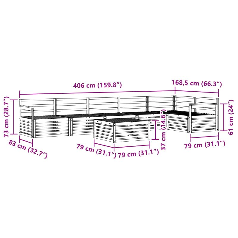 • 5 x Среден диван: 79 x 83 x 73 см (Д x Ш x В)