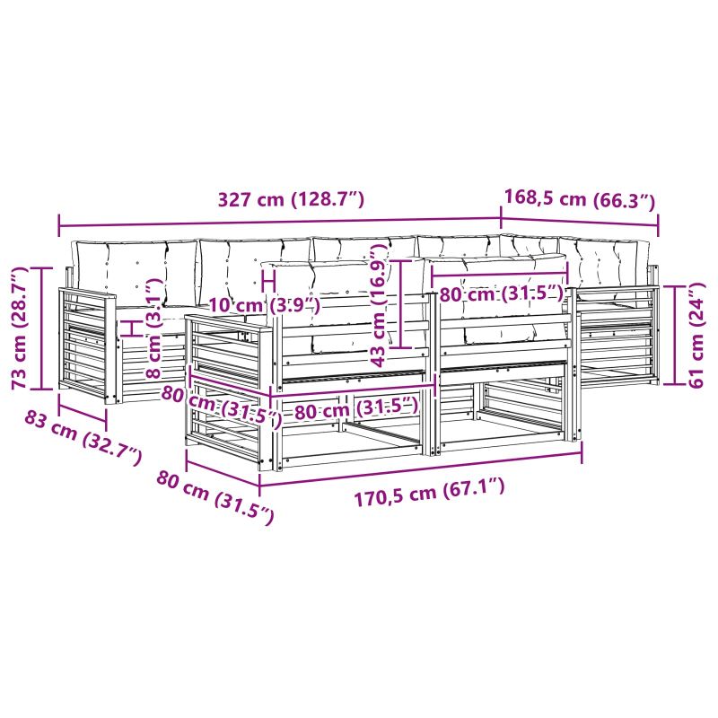• 6 x Среден диван: 79 x 83 x 73 см (ДxШxВ)