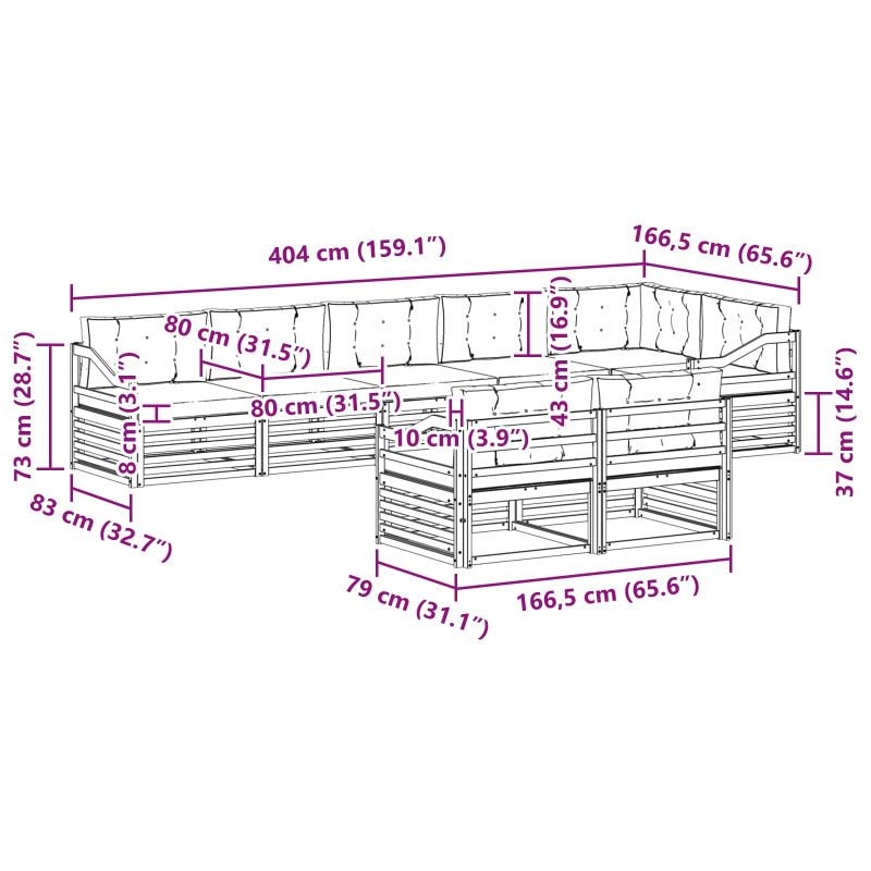 • 7 x Среден диван: 79 x 83 x 73 см (ДxШxВ)
