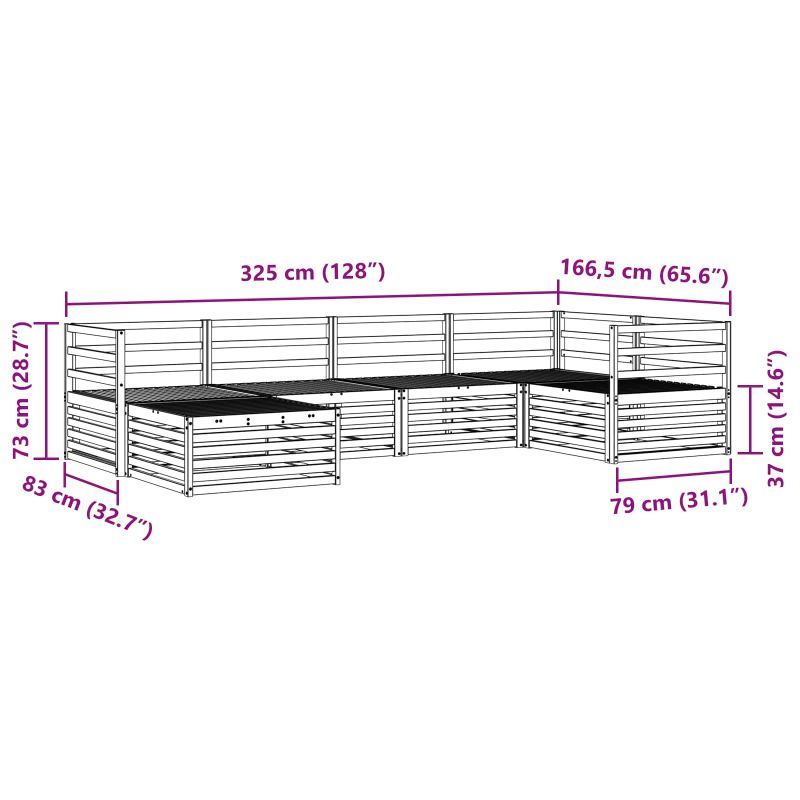 • Общи размери: 325 x 166,5 x 73 см (Д x Ш x В)