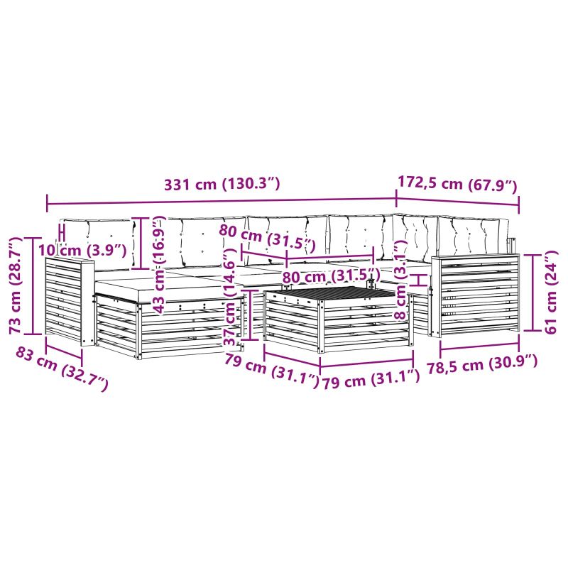 • 4 x Среден диван: 79 x 83 x 73 см (ДxШxВ)