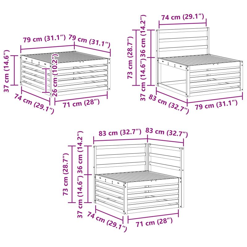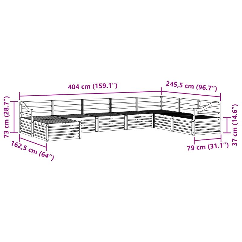 Комплектът мебели за открито комбинира стил и функционалност, създавайки централна атракция за всяка градина или тераса. С модерния си дизайн, чисти линии и минималистични детайли, той добавя елегантност и поддържа удобството по време на релаксация и социални мероприятия. Направен изцяло от солидна акациева дървесина, комплектът е здрав и визуално привлекателен, идеален за практични и стилни решения при мебели за открито. Издръжлива рамка от солидна акациева дървесина: Изработен от здраво дърво, този комплект е устойчив на времето. Конструкцията е укрепена за дълготрайност, а топлият тон добавя очарование на градини и тераси. Устойчив на времето дизайн: С лакирана повърхност, комплектът е защитен от слънчево изгаряне и дъжд. Полираното покритие пази външния вид и функционалността, предлагайки дълготрайност за вашата градина. Компоненти и дизайн: Всяка част е проектирана с комфорт и естетика предвид. Подлакътниците и гърбовете осигуряват опора и стил, създавайки визуално единство. Комфорт и многофункционалност: Модулният дизайн предлага разнообразие от конфигурации. Подходящ е за точното време за релакс, социални събирания или спокойно четене, и се нагажда лесно към всяка открита среда. Лесна поддръжка: Поддържайте комплектът чист, като избърсвате с влажна кърпа и избягвайте остри почистващи средства. Редовната поддръжка удължава живота и външния вид на мебелите.