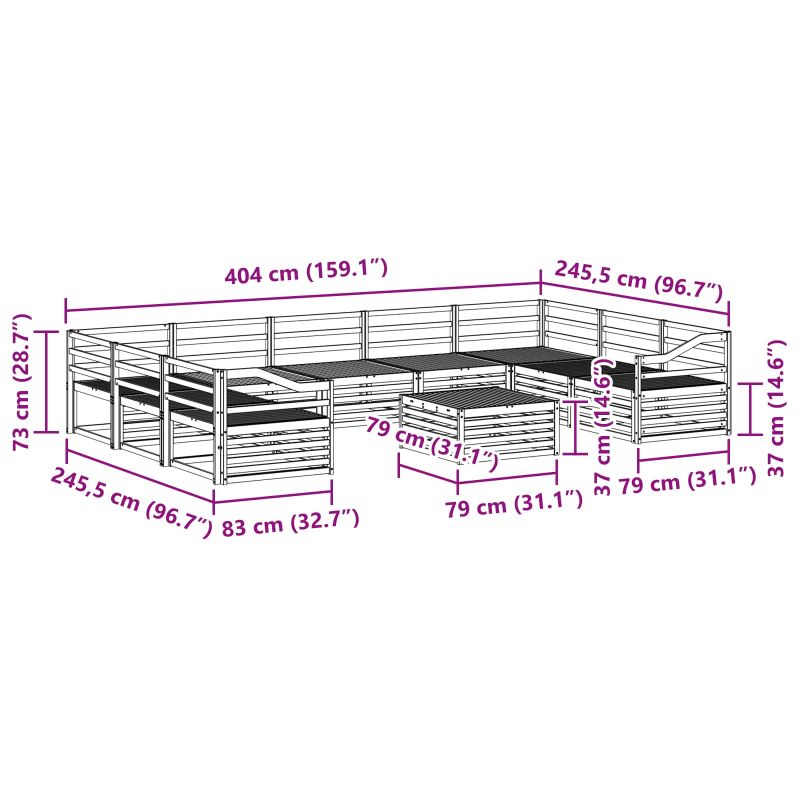 • 7 x Среден диван: 83 x 79 x 73 см (ДхШхВ)