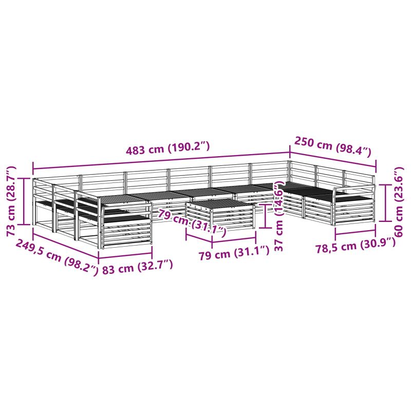 • 8 x Среден диван: 83 x 79 x 73 см (ДxШxВ)