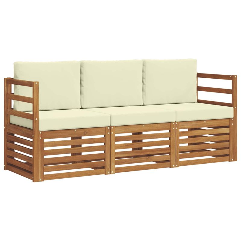 Комплекти дивани 3 pcs Натурален и Крема Солидно акациево дърво