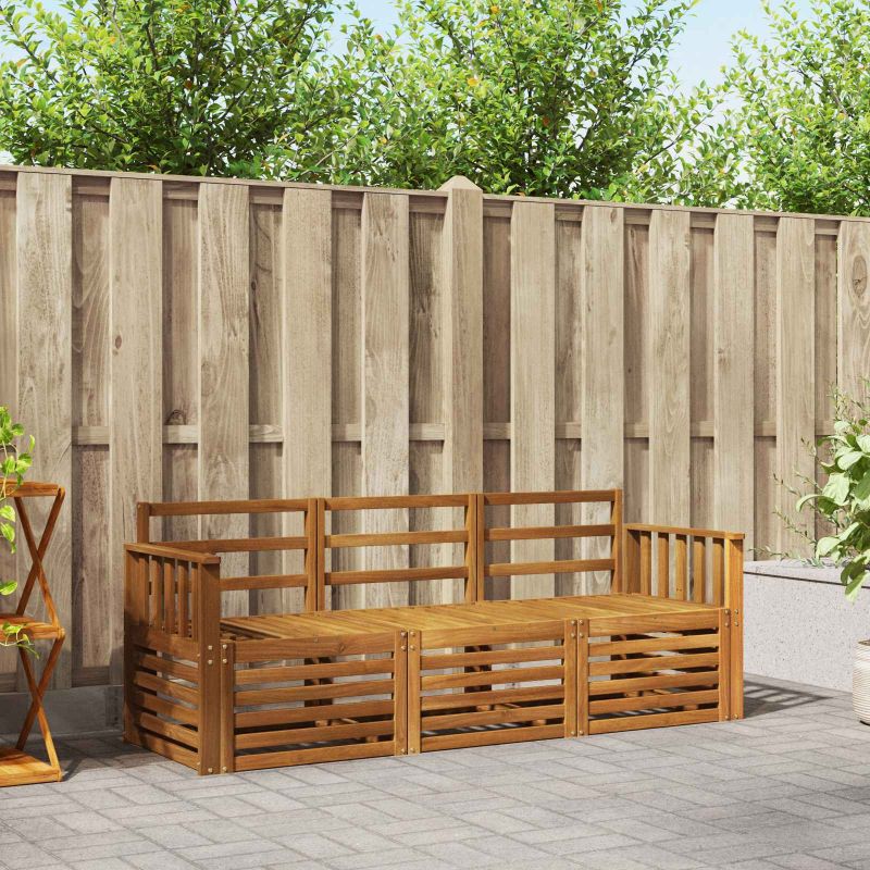 Този комплект за външен секционен диван ще вдигне нивото на всяко място, където го сложиш – било то градина, пато или двор. С комбинирането на модерен стил и естествени материали, той е истинско удобство за социални събирания или спокойни отпуснати мигове. Материали: Изработен е от масивна акациева дървесина с естествена текстура, която идеално подхожда на всяко открито пространство. Багрите на дървото добавят топлина и стил, което прави всеки момент там специален. Включени компоненти: Този комплект идва с модулни части, които можеш да подредиш както ти е удобно. Акациевите подлакътници и структурата му са яки и осигуряват елегантен вид и комфорт за твоите приятелски събирания на открито. Предимства / Функции / Дизайн: Слепеният дизайн предотвратява натрупването на вода и позволява добрата циркулация на въздуха. Стилът комбинира простота и функционалност, което е наистина удобно и актуално. Препоръчителни употреби: Идеален за градини, патота или дворове, този комплект е чудесно място за слънчеви бани, забавления или просто да се насладиш на сутрешното си кафе. Гъвкавостта му отговаря за всякакви нужди – от интимни събирания до мързеливи следобеди. Грижа & Поддръжка: За да остане като нов, просто го избърсвай с влажна кърпа, за да махнеш прахта. С лесната му поддръжка, дълготрайната красота и функционалност са гарантирани, дори когато е на открито.
