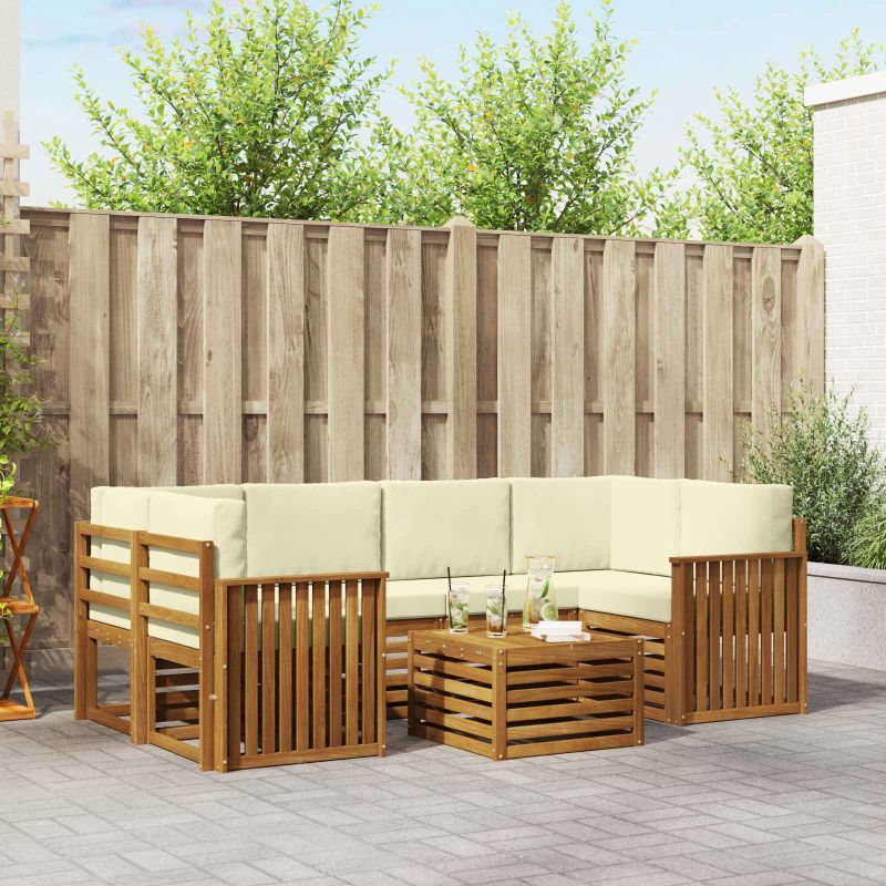 Комплекти дивани 7 pcs Натурален и Крема Солидно акациево дърво