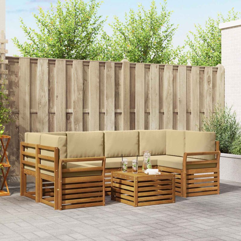 Комплекти дивани 7 pcs Натурален и Бежов Солидно акациево дърво