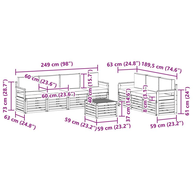 Комплектът за открито съчетава стил и практичност, добавяйки динамика на всяка градина или тереса. Неговият модерен дизайн с изчистени линии и минималистични детайли внася елегантност, докато предоставя комфорт за социални събирания на открито. Направен е изцяло от масивно акациево дърво, което гарантира дълготрайност и приятно визуално въздействие – идеален избор за онези, които търсят нещо практично и стилно. Издръжлива масивна акациева дървесина: Направен от масивно акациево дърво, този комплект е стабилен и устойчив на открито. Здравата конструкция осигурява надеждна опора и дълготрайност, а топлият тон обогатява всяка градина или тереса. Устойчив на времето дизайн: Лакираната повърхност предлага допълнителна защита от слънце и дъжд. Лъскавото покритие запазва външния вид и осигурява дълготрайна устойчивост за вашата градина, тераса или двор. Компоненти и дизайн: Всеки елемент е проектиран за стил и комфорт. Допълнителните характеристики внасят уют, а съвместимият дизайн създава визуално привлекателен ансамбъл. Комфорт и многообразие: Модулният дизайн позволява адаптация към различни пространства. Идеален е за почивка, социални събирания или четене на свеж въздух – визуално обогатява всяка открита среда. Лесна поддръжка и сглобяване: Чистенето с влажна кърпа е лесно, а изборът на меки почистващи средства е препоръчителен. Редовната грижа запазва привлекателния вид на мебелите.