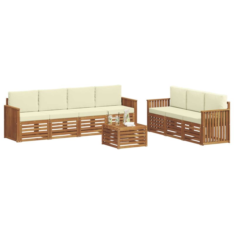 Комплекти дивани 8 pcs Натурален и Крема Солидно акациево дърво