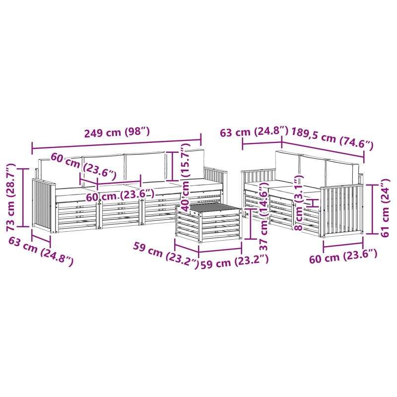 Комплектът за открито съчетава стил и практичност, добавяйки динамика на всяка градина или тереса. Неговият модерен дизайн с изчистени линии и минималистични детайли внася елегантност, докато предоставя комфорт за социални събирания на открито. Направен е изцяло от масивно акациево дърво, което гарантира дълготрайност и приятно визуално въздействие – идеален избор за онези, които търсят нещо практично и стилно. Издръжлива масивна акациева дървесина: Направен от масивно акациево дърво, този комплект е стабилен и устойчив на открито. Здравата конструкция осигурява надеждна опора и дълготрайност, а топлият тон обогатява всяка градина или тереса. Устойчив на времето дизайн: Лакираната повърхност предлага допълнителна защита от слънце и дъжд. Лъскавото покритие запазва външния вид и осигурява дълготрайна устойчивост за вашата градина, тераса или двор. Компоненти и дизайн: Всеки елемент е проектиран за стил и комфорт. Допълнителните характеристики внасят уют, а съвместимият дизайн създава визуално привлекателен ансамбъл. Комфорт и многообразие: Модулният дизайн позволява адаптация към различни пространства. Идеален е за почивка, социални събирания или четене на свеж въздух – визуално обогатява всяка открита среда. Лесна поддръжка и сглобяване: Чистенето с влажна кърпа е лесно, а изборът на меки почистващи средства е препоръчителен. Редовната грижа запазва привлекателния вид на мебелите.