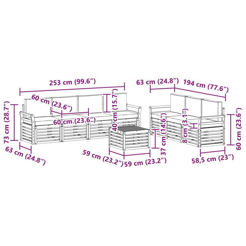Комплектът за открито съчетава стил и практичност, добавяйки динамика на всяка градина или тереса. Неговият модерен дизайн с изчистени линии и минималистични детайли внася елегантност, докато предоставя комфорт за социални събирания на открито. Направен е изцяло от масивно акациево дърво, което гарантира дълготрайност и приятно визуално въздействие – идеален избор за онези, които търсят нещо практично и стилно. Издръжлива масивна акациева дървесина: Направен от масивно акациево дърво, този комплект е стабилен и устойчив на открито. Здравата конструкция осигурява надеждна опора и дълготрайност, а топлият тон обогатява всяка градина или тереса. Устойчив на времето дизайн: Лакираната повърхност предлага допълнителна защита от слънце и дъжд. Лъскавото покритие запазва външния вид и осигурява дълготрайна устойчивост за вашата градина, тераса или двор. Компоненти и дизайн: Всеки елемент е проектиран за стил и комфорт. Допълнителните характеристики внасят уют, а съвместимият дизайн създава визуално привлекателен ансамбъл. Комфорт и многообразие: Модулният дизайн позволява адаптация към различни пространства. Идеален е за почивка, социални събирания или четене на свеж въздух – визуално обогатява всяка открита среда. Лесна поддръжка и сглобяване: Чистенето с влажна кърпа е лесно, а изборът на меки почистващи средства е препоръчителен. Редовната грижа запазва привлекателния вид на мебелите.