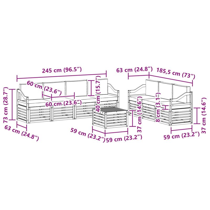 Комплектът за открито съчетава стил и практичност, добавяйки динамика на всяка градина или тереса. Неговият модерен дизайн с изчистени линии и минималистични детайли внася елегантност, докато предоставя комфорт за социални събирания на открито. Направен е изцяло от масивно акациево дърво, което гарантира дълготрайност и приятно визуално въздействие – идеален избор за онези, които търсят нещо практично и стилно. Издръжлива масивна акациева дървесина: Направен от масивно акациево дърво, този комплект е стабилен и устойчив на открито. Здравата конструкция осигурява надеждна опора и дълготрайност, а топлият тон обогатява всяка градина или тереса. Устойчив на времето дизайн: Лакираната повърхност предлага допълнителна защита от слънце и дъжд. Лъскавото покритие запазва външния вид и осигурява дълготрайна устойчивост за вашата градина, тераса или двор. Компоненти и дизайн: Всеки елемент е проектиран за стил и комфорт. Допълнителните характеристики внасят уют, а съвместимият дизайн създава визуално привлекателен ансамбъл. Комфорт и многообразие: Модулният дизайн позволява адаптация към различни пространства. Идеален е за почивка, социални събирания или четене на свеж въздух – визуално обогатява всяка открита среда. Лесна поддръжка и сглобяване: Чистенето с влажна кърпа е лесно, а изборът на меки почистващи средства е препоръчителен. Редовната грижа запазва привлекателния вид на мебелите.
