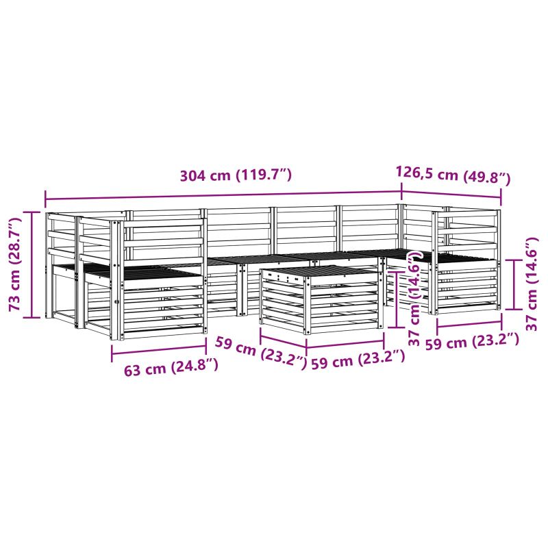 • 5 x Среден диван: 63 x 59 x 73 см (ДxШxВ)