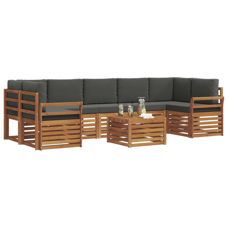 Комплектът за външна мебел съчетава стил и функционалност, създавайки впечатляваща централна част за всяка градина или тераса. С модерен дизайн, изчистени линии и минимални детайли, той внася елегантност, осигурявайки удобство за външния отдих и социални събирания. Направен от масивна акациева дървесина, той е издръжлив и изглежда страхотно, което го прави идеален за тези, които търсят практичност и стил в мебелите за открито. Масивна акациева дървесина: Изработен от издръжливо акациево дърво. Здравата конструкция предлага надеждност и стабилност, а топлият натурален цвят добавя красота на градината или терасата. Устойчив на атмосферни условия: Лаковото покритие осигурява допълнителна защита от слънце и дъжд, запазвайки функционалността и вида за дълго време. Дизайн и компоненти: Всеки елемент е проектиран за стил и комфорт. Съвместимият дизайн създава красиво визуално единство, подходящо за всякакви събития на открито. Комфорт и гъвкавост: Модулният дизайн позволява различни конфигурации, идеално за почивка или социални срещи. Работи чудесно навсякъде, добавяйки комфорт. Лесна грижа: Поддържайте мебелите свежи с влажна кърпа и избягвайте агресивни почистващи средства. Редовната поддръжка пази добрия вид и удължава живота на мебелите.