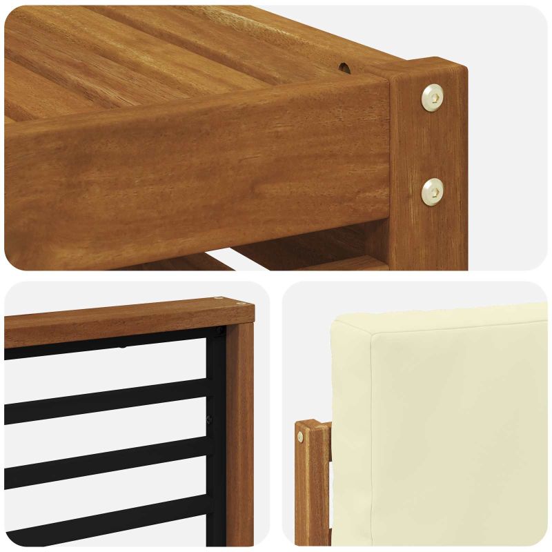 Комплектът за външна мебел съчетава стил и функционалност, създавайки впечатляваща централна част за всяка градина или тераса. С модерен дизайн, изчистени линии и минимални детайли, той внася елегантност, осигурявайки удобство за външния отдих и социални събирания. Направен от масивна акациева дървесина, той е издръжлив и изглежда страхотно, което го прави идеален за тези, които търсят практичност и стил в мебелите за открито. Масивна акациева дървесина: Изработен от издръжливо акациево дърво. Здравата конструкция предлага надеждност и стабилност, а топлият натурален цвят добавя красота на градината или терасата. Устойчив на атмосферни условия: Лаковото покритие осигурява допълнителна защита от слънце и дъжд, запазвайки функционалността и вида за дълго време. Дизайн и компоненти: Всеки елемент е проектиран за стил и комфорт. Съвместимият дизайн създава красиво визуално единство, подходящо за всякакви събития на открито. Комфорт и гъвкавост: Модулният дизайн позволява различни конфигурации, идеално за почивка или социални срещи. Работи чудесно навсякъде, добавяйки комфорт. Лесна грижа: Поддържайте мебелите свежи с влажна кърпа и избягвайте агресивни почистващи средства. Редовната поддръжка пази добрия вид и удължава живота на мебелите.