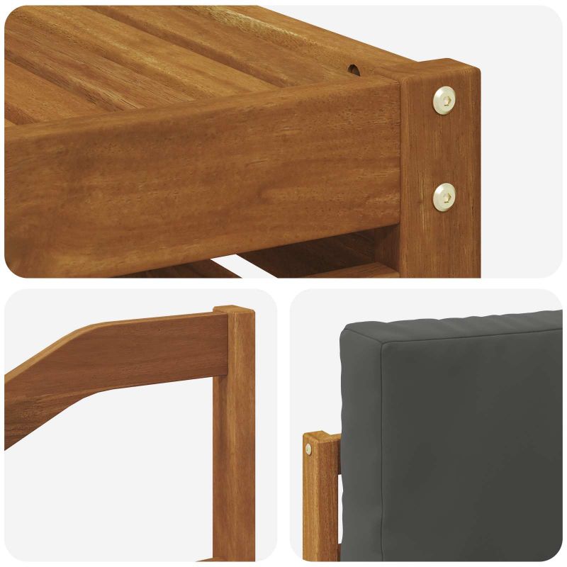 Комплектът за външна мебел съчетава стил и функционалност, създавайки впечатляваща централна част за всяка градина или тераса. С модерен дизайн, изчистени линии и минимални детайли, той внася елегантност, осигурявайки удобство за външния отдих и социални събирания. Направен от масивна акациева дървесина, той е издръжлив и изглежда страхотно, което го прави идеален за тези, които търсят практичност и стил в мебелите за открито. Масивна акациева дървесина: Изработен от издръжливо акациево дърво. Здравата конструкция предлага надеждност и стабилност, а топлият натурален цвят добавя красота на градината или терасата. Устойчив на атмосферни условия: Лаковото покритие осигурява допълнителна защита от слънце и дъжд, запазвайки функционалността и вида за дълго време. Дизайн и компоненти: Всеки елемент е проектиран за стил и комфорт. Съвместимият дизайн създава красиво визуално единство, подходящо за всякакви събития на открито. Комфорт и гъвкавост: Модулният дизайн позволява различни конфигурации, идеално за почивка или социални срещи. Работи чудесно навсякъде, добавяйки комфорт. Лесна грижа: Поддържайте мебелите свежи с влажна кърпа и избягвайте агресивни почистващи средства. Редовната поддръжка пази добрия вид и удължава живота на мебелите.