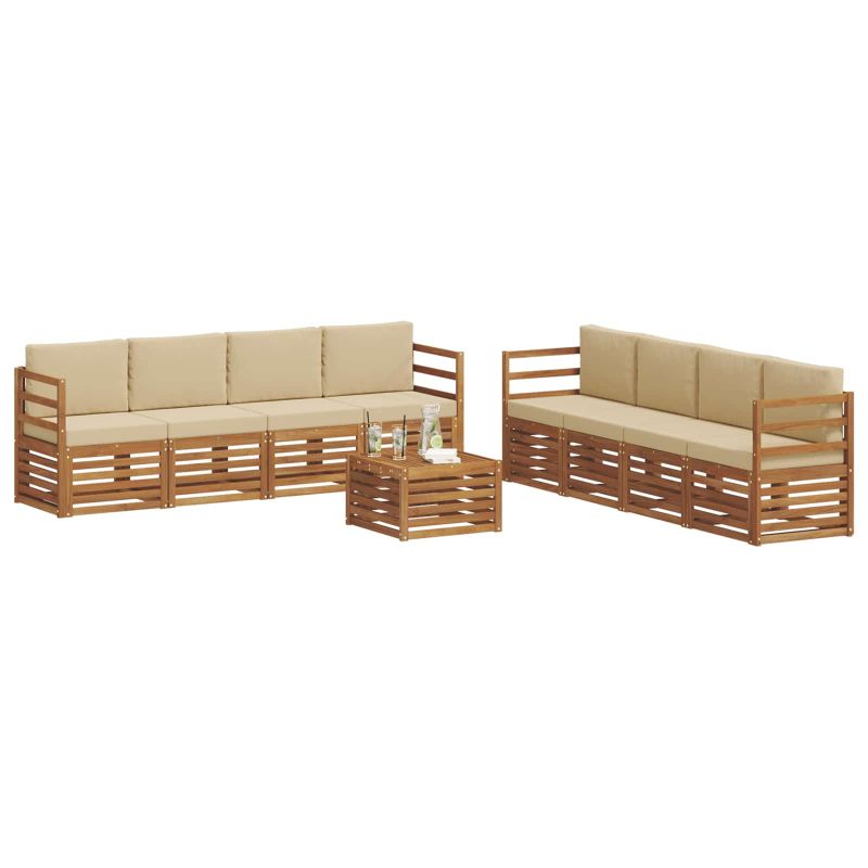 Комплекти дивани 9 pcs Натурален и Бежов Солидно акациево дърво