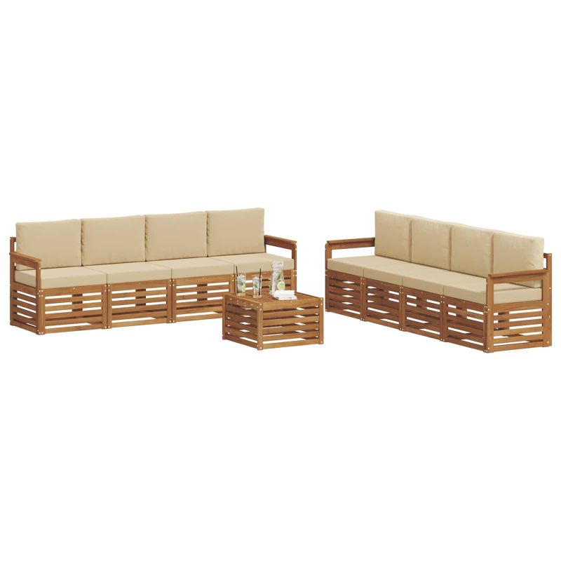 Комплекти дивани 9 pcs Натурален и Бежов Солидно акациево дърво
