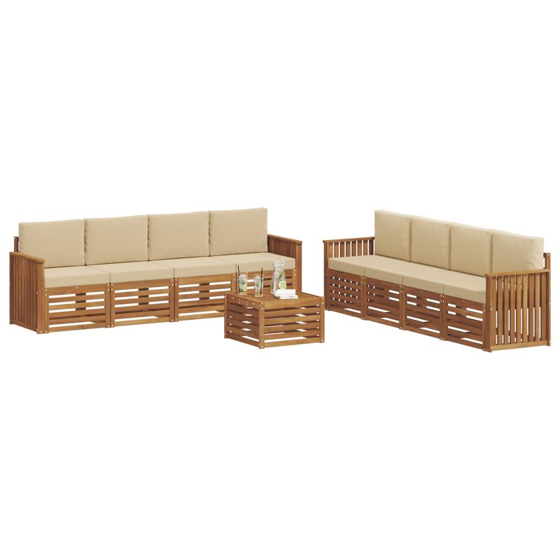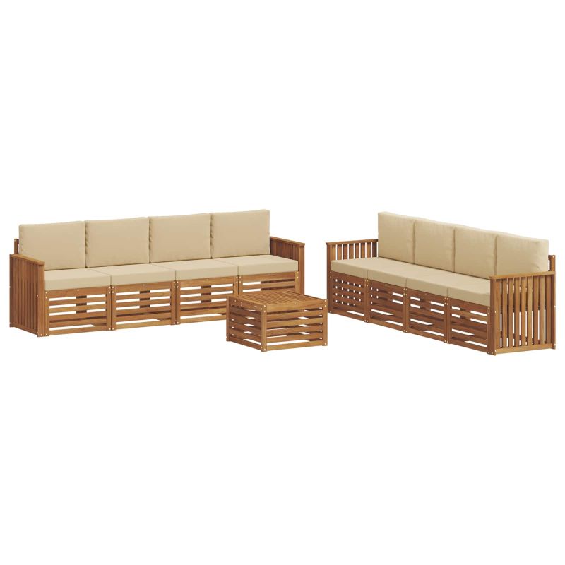 Комплекти дивани 9 pcs Натурален и Бежов Солидно акациево дърво