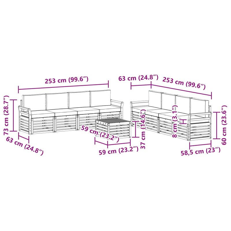Комплектът градински мебели съчетава стил и функция, създавайки акцентна точка за всяка градина или тераса. Модерният дизайн с изчистени линии и минимални детайли добавя елегантност и осигурява комфорт за открито и социални събирания. Изработен е изцяло от качествена акациева дървесина, която предлага здравина и дълготрайна визуална привлекателност – идеално решение за всички, търсещи практичност и стил в градинските мебели. Издръжлива масивна акациева дървесина: Този комплект е известен със своята здравина и устойчивост на климатични промени. Структурата предлага стабилна опора и дълготрайност, а топлият естествен нюанс се вписва прекрасно в всяка градина. Устойчив на времето дизайн: Лакираната повърхност осигурява допълнителна защита срещу слънце и дъжд. Полираното покритие запазва визията и функционалността дълго време, поддържайки твоята градина или тераса в отлично състояние. Компоненти и дизайн: Всеки елемент е проектиран както за стил, така и за удобство. Поддържащите функции осигуряват комфорт, а координираният дизайн създава визуално хармоничен комплект, идеален за обществени събития. Комфорт и многостранност: Модулният дизайн позволява лесна конфигурация и адаптиране за различни нужди. Идеален е за социални събирания или спокойни мигове на четене, осигурявайки максимален комфорт на открито. Лесна поддръжка: Просто избирай повърхността с влажна кърпа и избягвай агресивни средства. Редовната поддръжка съхранява визуалната привлекателност и удължава живота на мебелите.