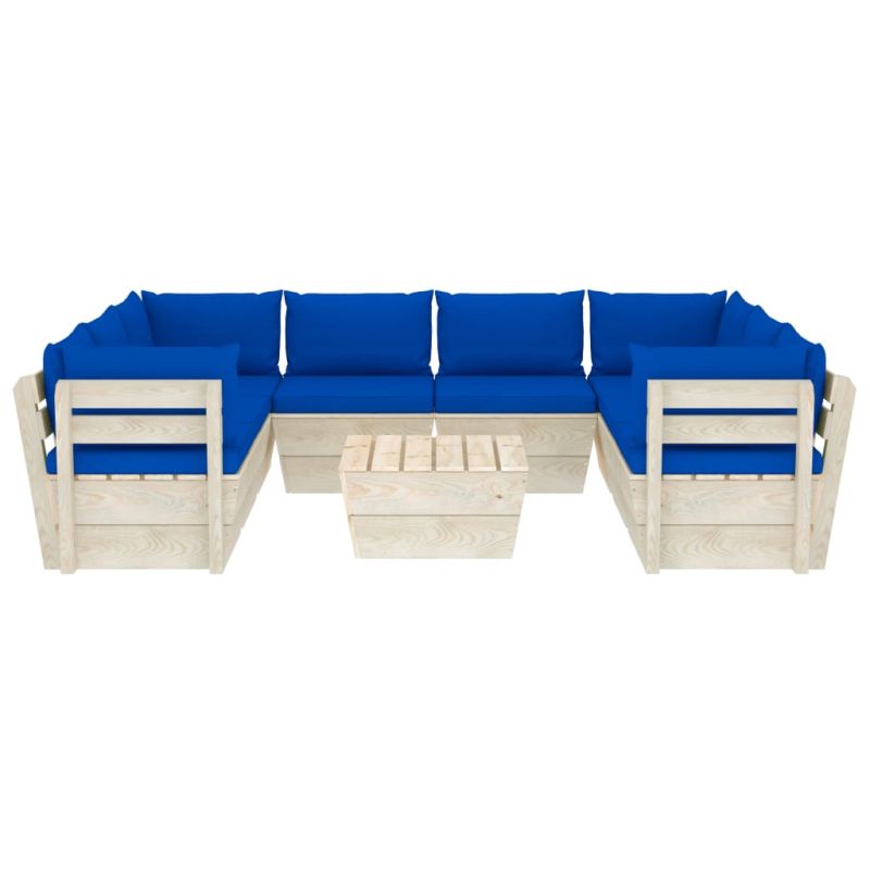 Градински лаундж комплект от палети 9 части с възглавници смърч
