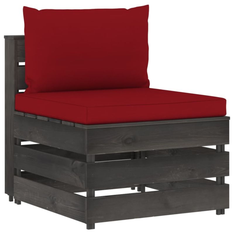 Секционен среден диван с възглавници, сиво импрегнирано дърво