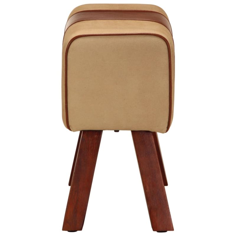 Създайте лека атмосфера във винтидж стил във вашето жилищно пространство с тази пейка стил гимнастическа коза от естествена кожа. Тази пейка разполага със седалка от износоустойчива естествена кожа и канава, осигуряващи отлично изживяване. Гимнастическата пейка се поддържа от крака от масивно мангово дърво, което я прави стабилна и здрава. В допълнение, плътната подплата добавя допълнителен комфорт.