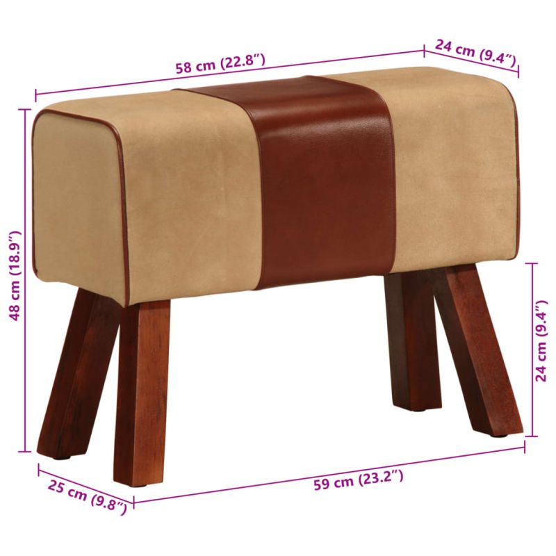 Пейка гимнастическа 58 см кафява естествена кожа и манго масив